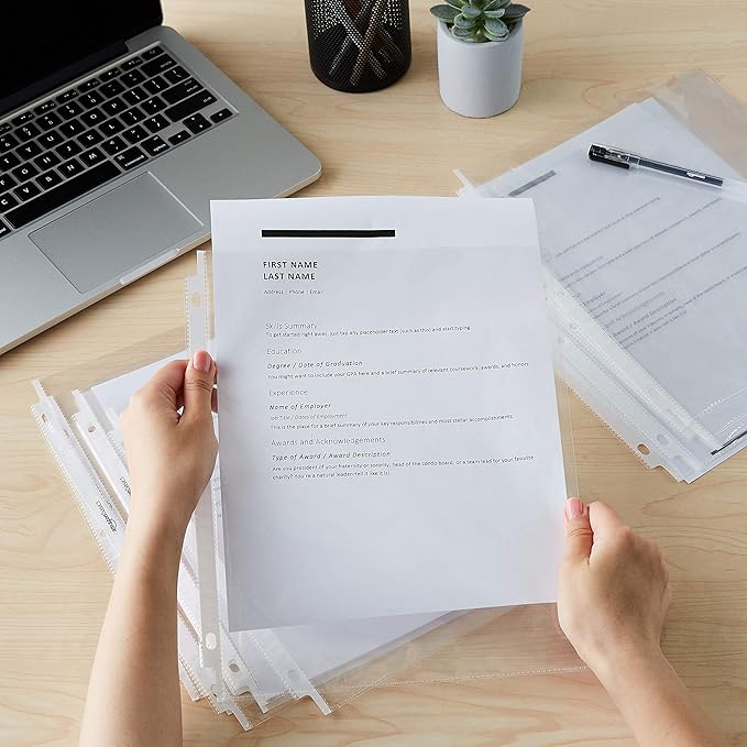 • 1200-pack of sheet protectors for organizing, storing, and protecting 8.5-by-11-inch sheets of paper