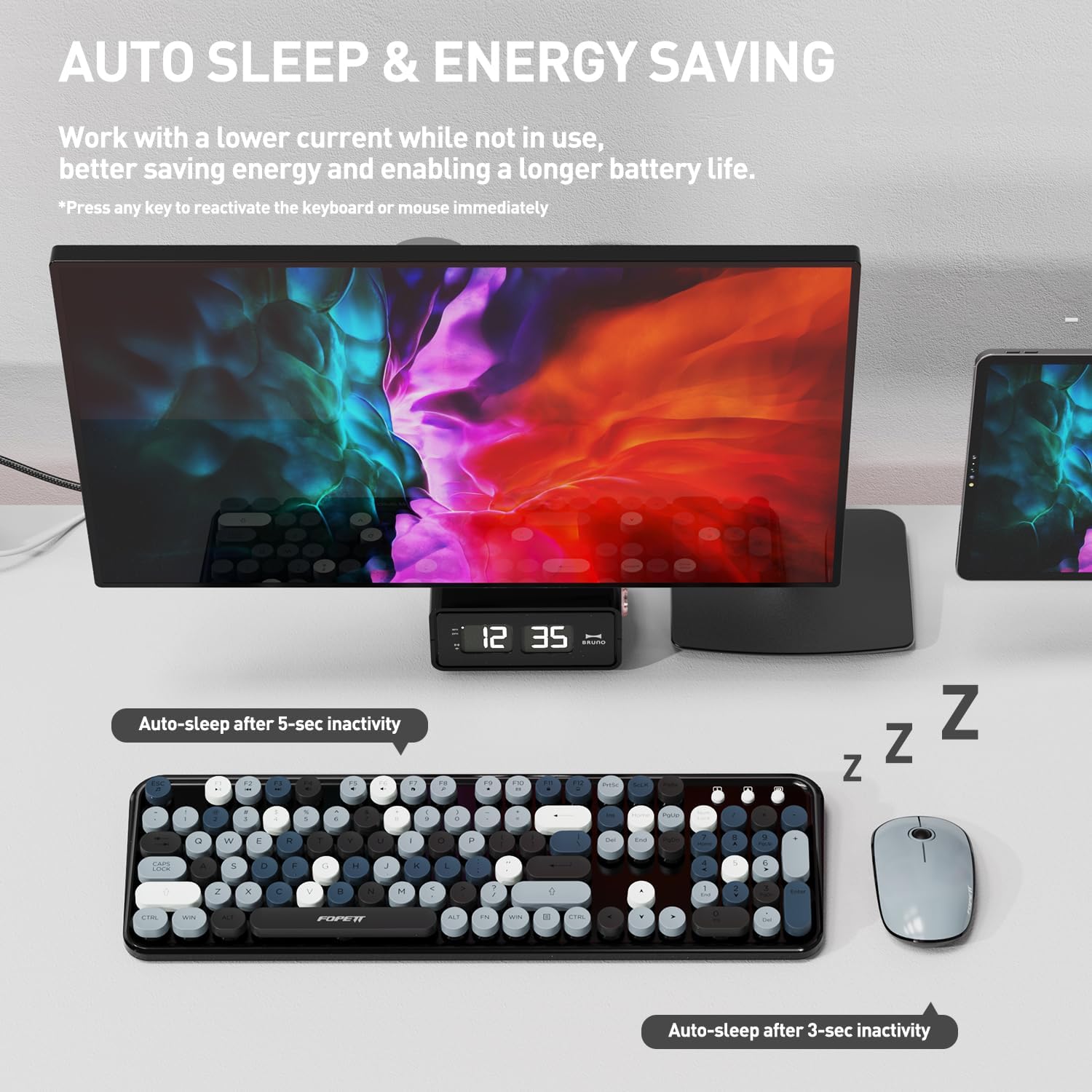 • 【Full-Size keyboard with Detachable Round Keycaps】The typewriter keyboard wireless has blue retro round keys and the silent click of the quiet mice will allow you to do your job without disturbing others. The mini mouse is with modern ergonomic design, Fixed DPI :1200. All circle buttons can be disassembled, put in water to clean.