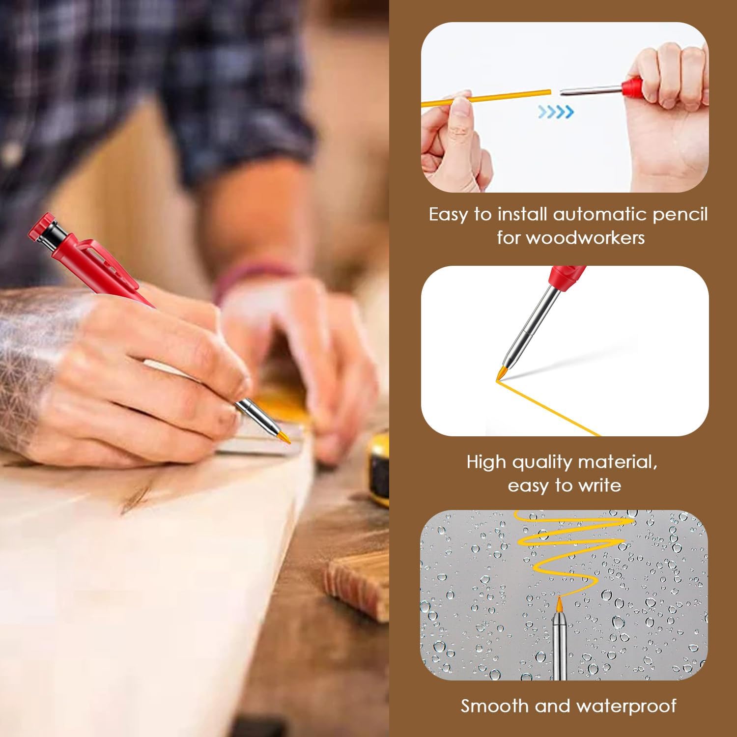 • 【Widely Used】 Waterproof and durable woodworking pencil refills can be used in many places, such as woodworking, construction, writing, painting, sketching, architecture, jewelry, carving, crafts, metal, etc. Suitable for your writing, drawing, drafting.