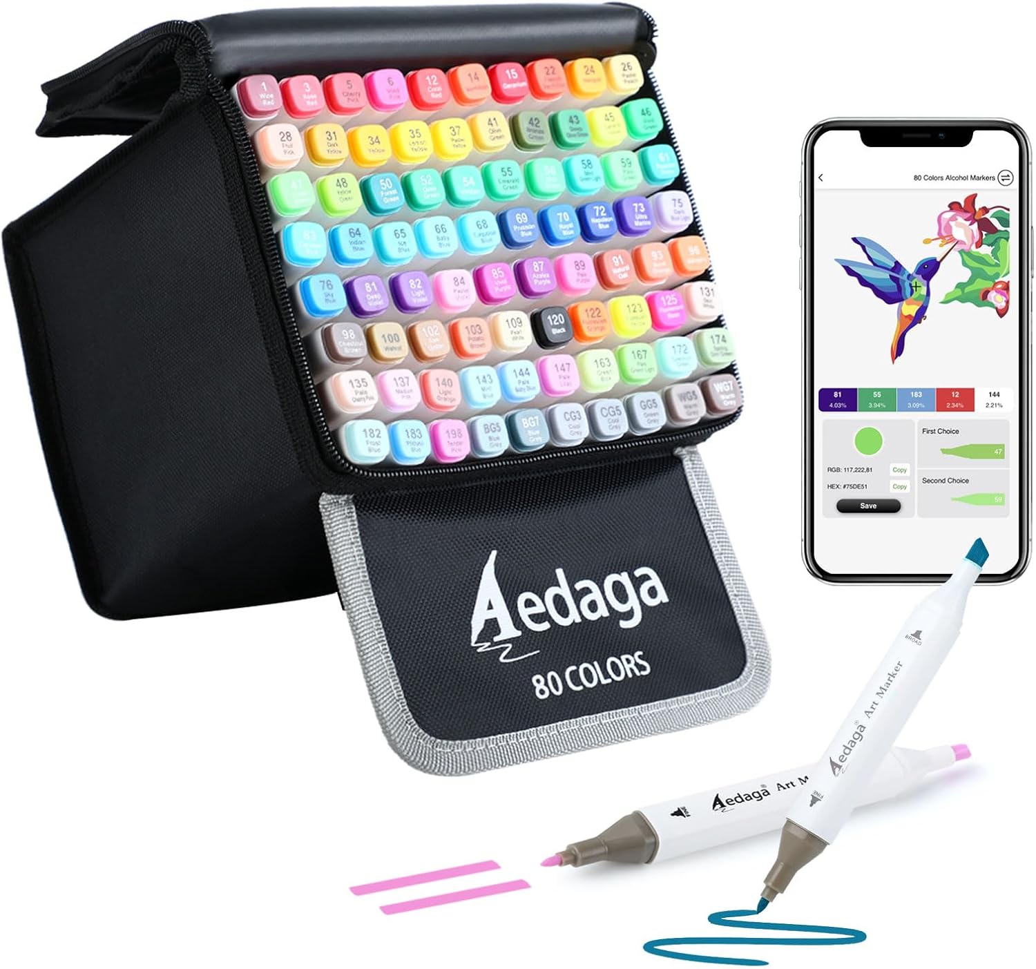 80 Colors Alcohol Markers with Free App, Dual Tip Art Marker with Kickstand Case for Artists Adults and Kids. Alcohol Based Markers for Coloring Painting Sketching and Drawing, Great Gift