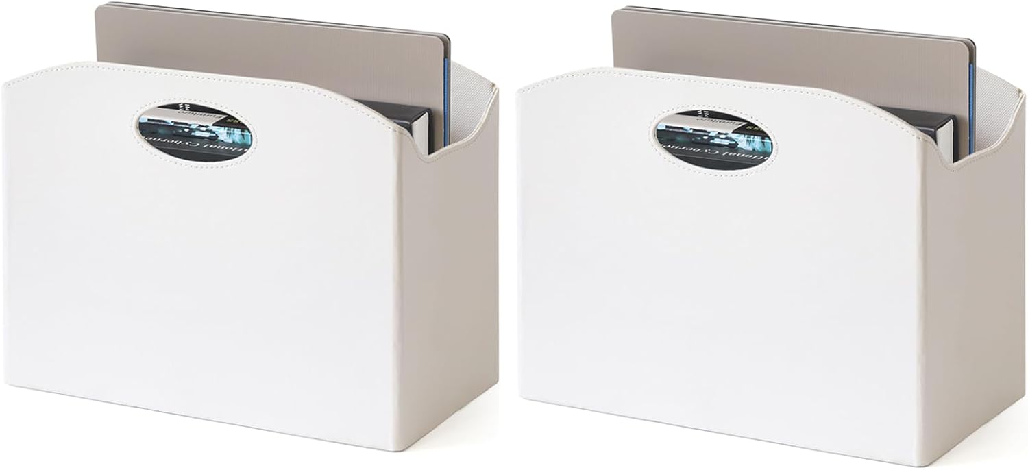 EZDeco Magazine Holder Foldable Magazine Rack Floor PU Leather File Holder Newspaper Book Storage Basket Document File Folder Organizer for Office Home (White-2)