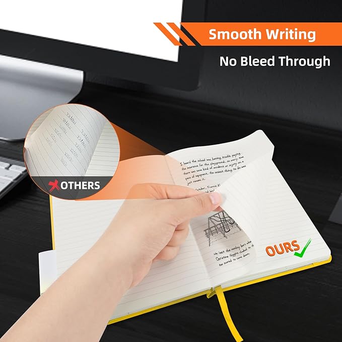 • NO BLEED THROUGH & GHOSTING - Bossand notebook is made with 200 pages high-quality, 100 gsm acid-free paper, the premium thick paper ensures a smooth touch and prevents ink from bleeding through the pages, ghosting, or discoloration. Whether you prefer fountain pens, gel pens, or ballpoint pens, this journal is suitable for most writing instruments.