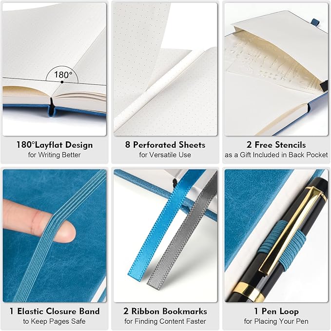 • 【Tough & Stylish Hardcover】Crafted from TOP-NOTCH VEGAN LEATHER with distinctive texture, which is animal-friendly and boasts a luxurious look. DURABLE hard cover provides superior protection to your pages compared to softcover, while offering a stable writing surface. Featuring an innovative thread-bound binding that allows for easy LAY-FLAT use, catering to both right-and left-handed users.