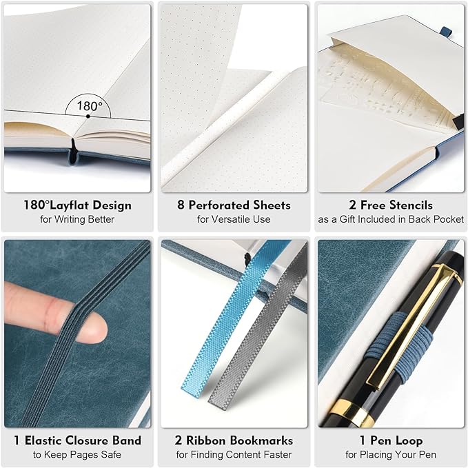• 【Tough & Stylish Hardcover】Crafted from TOP-NOTCH VEGAN LEATHER with distinctive texture, which is animal-friendly and boasts a luxurious look. DURABLE hard cover provides superior protection to your pages compared to softcover, while offering a stable writing surface. Featuring an innovative thread-bound binding that allows for easy LAY-FLAT use, catering to both right-and left-handed users.