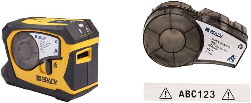 Brady M211 Portable Bluetooth Monochrome Label Printer & Authentic (M21-500-595-WT) All-Weather Vinyl Label for Indoor/Outdoor ID, Lab and Equipment Labeling, Black on White .5" W 21' L