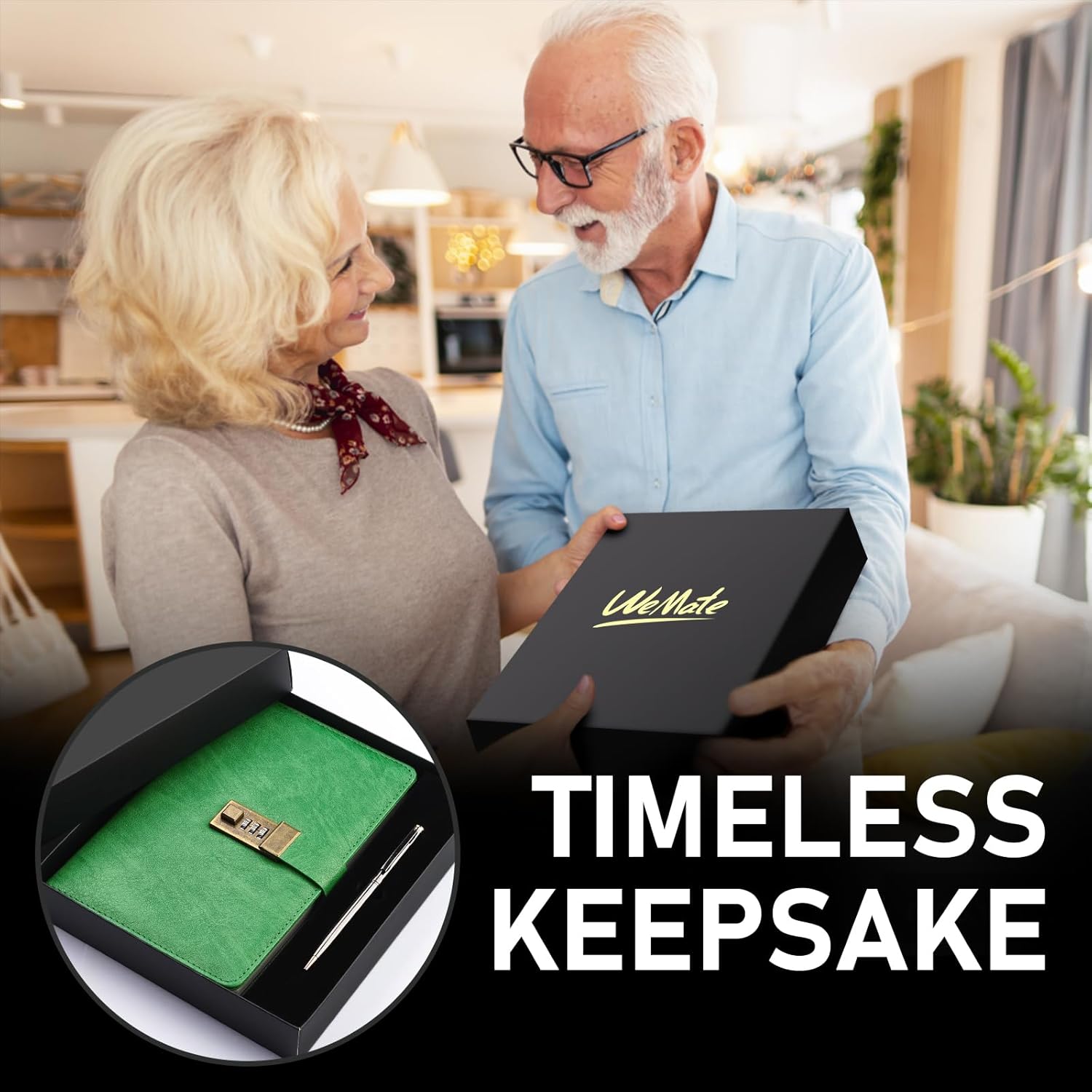 WEMATE Diary with Lock, A5 PU Leather Journal with Lock 240 Pages, Vintage Lock Journal Password Protected Notebook with Pen & Gift Box, Lock Diary Planner Organizer for Men and Women, 8.6x5.8in
