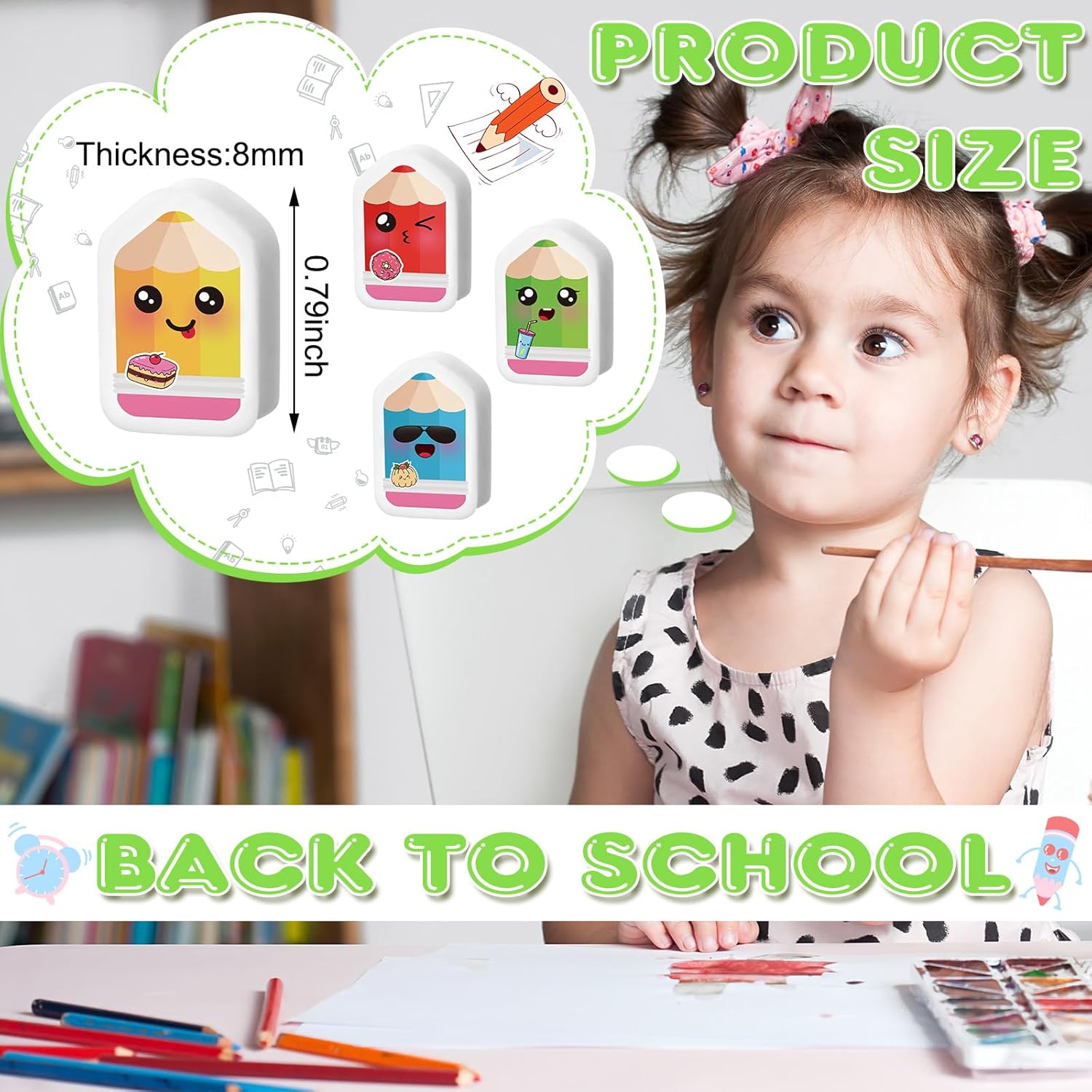 • Pencil Design: the pencil design of these mini erasers enhances the fun of erasing; The cute expression on each eraser makes them eye-catching and versatile; They can be applied not only for erasing mistakes but also as party favors, teaching tools, and homework rewards