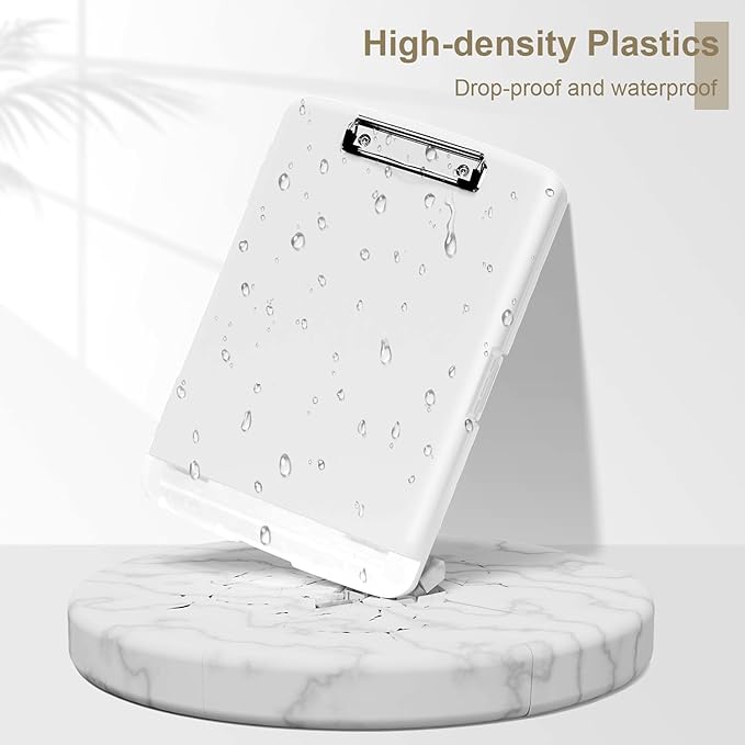 • Built to Last: Clip board with storage is made of thick plastic, high-impact, anti-fray and have a smooth surface to write on. Unique hinge-and-clasp system can withstand daily use and will not fall apart after millions of opens and closes