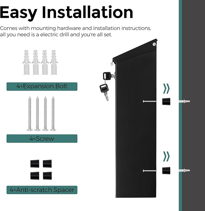 • EASY INSTALLATION: This post box comes with screws, expansion bolts, and Anti-scratch spacers, making installation a breeze. You can effortlessly mount it near your front door or porch