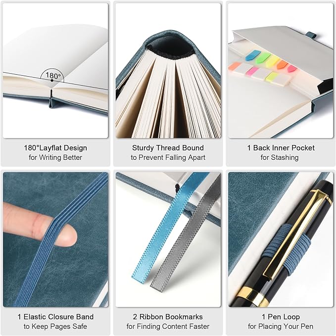 • 【Tough & Stylish Hardcover】Crafted from TOP-NOTCH VEGAN LEATHER with distinctive texture, which is animal-friendly and boasts a luxurious look. DURABLE hard cover provides superior protection to your pages compared to softcover, while offering a stable writing surface. Featuring an innovative thread-bound binding that allows for easy LAY-FLAT use, catering to both right-and left-handed users.