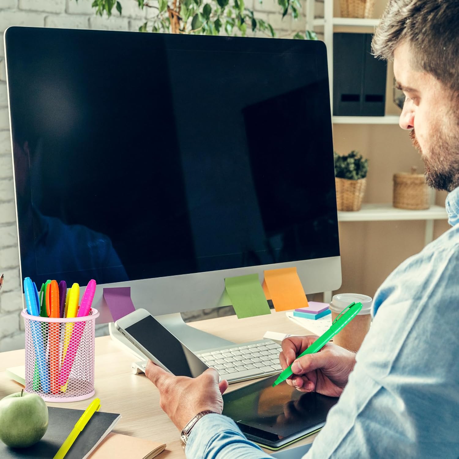 • Chisel Tip Highlighter Pens: aesthetic cute highlighters create thick and thin lines, nice for highlighting and underlining; Highlighters pens are ideal for stocking up as office supplies or school supplies for teachers and office staff, achieving convenient distribution and storage