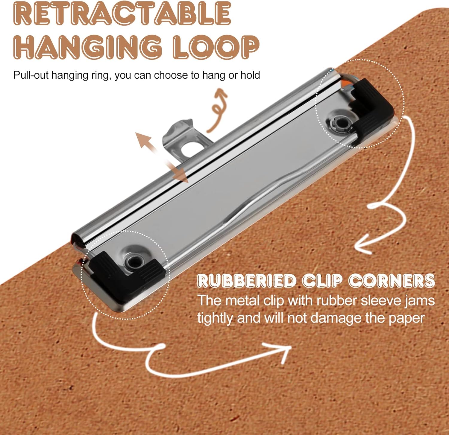 • RETRACTABLE HANGING LOOP: The clipboards have a built-in hanging hole, which can help you place your documents randomly. And it can be stowed away when not needed