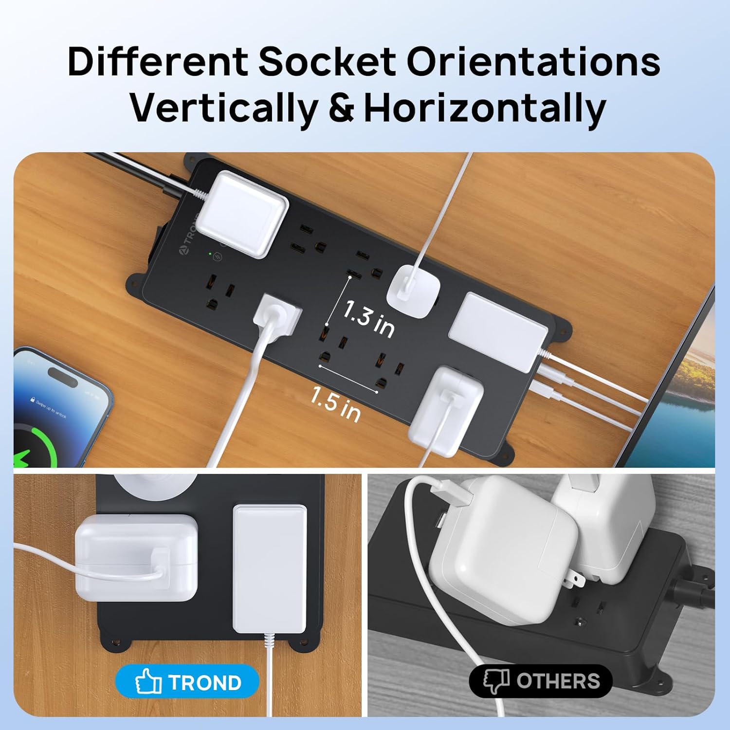 • Power Strip Wall Mountable: Four mounting holes on the two sides can enable to use screws to mount this wall mount power strip to the wall firmly, including entertainment center, behind tv, dorm room, guest room, garage, desktop, under desk/counters, workbenches, etc. which can save space for you