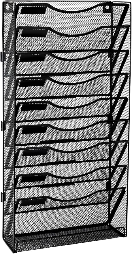 • Tool-Free Assembly: Hanging file organizer requires zero tools for assembly. Mounts on walls, cubicles, partitions or stand on desk. Includes screws for installation.
