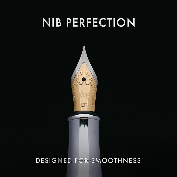 Wordsworth & Black Fountain Pen Set, Extra Fine Nib, Includes 24 Pack Ink Cartridges, Ink Refill Converter & Gift Pouch, Chrome Finish, Calligraphy, [Silver Chrome], Perfect for Men & Women