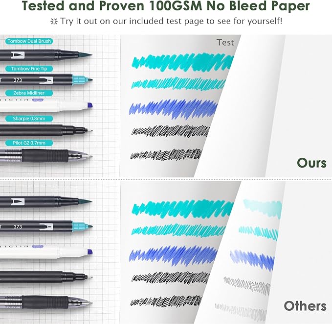 • 【Thick Paper for Writing Without Limits】Large A5 hardcover notebook (5.75"x 8.38"/145mm x 215mm), total 320 pages, includes 312 numbered pages(equal to 156 sheets). 5 x 5mm graph grid paper(5 squares per inch). Our INNOVATIVE PAPER TECHNOLOGY on 100GSM thick paper ensures a perfect canvas for your ideas - no bleed, no ghosting, as confirmed by tests with various pens.