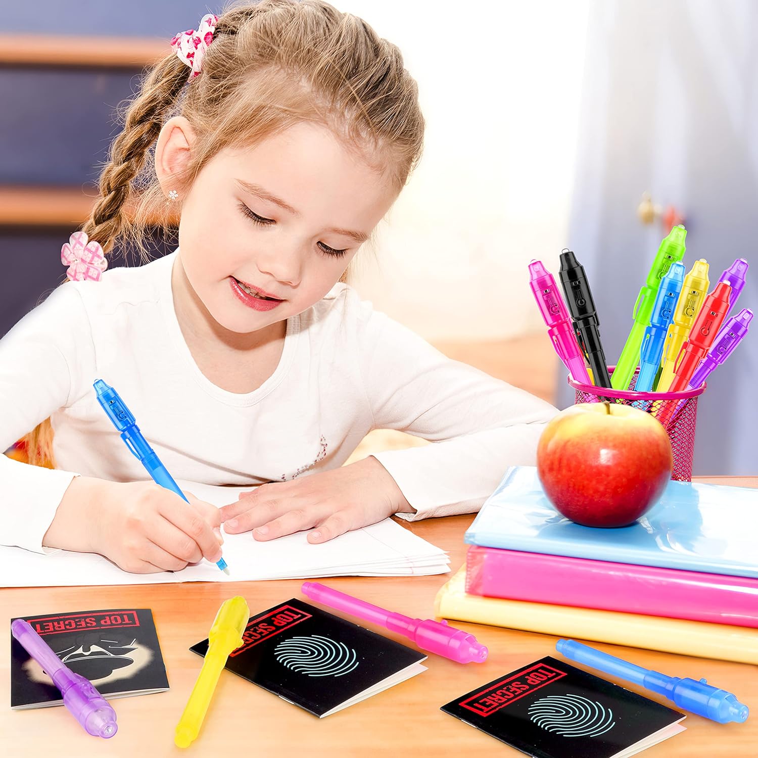 GIFTINBOX Invisible Ink Pens with UV light for Kids, Spy Pen Party Favors for Kids 8-12, 12 Pack Invisible Ink Pen and Notebook, Magic Marker for Secret Message Birthday Party Favors for Kid 4-8