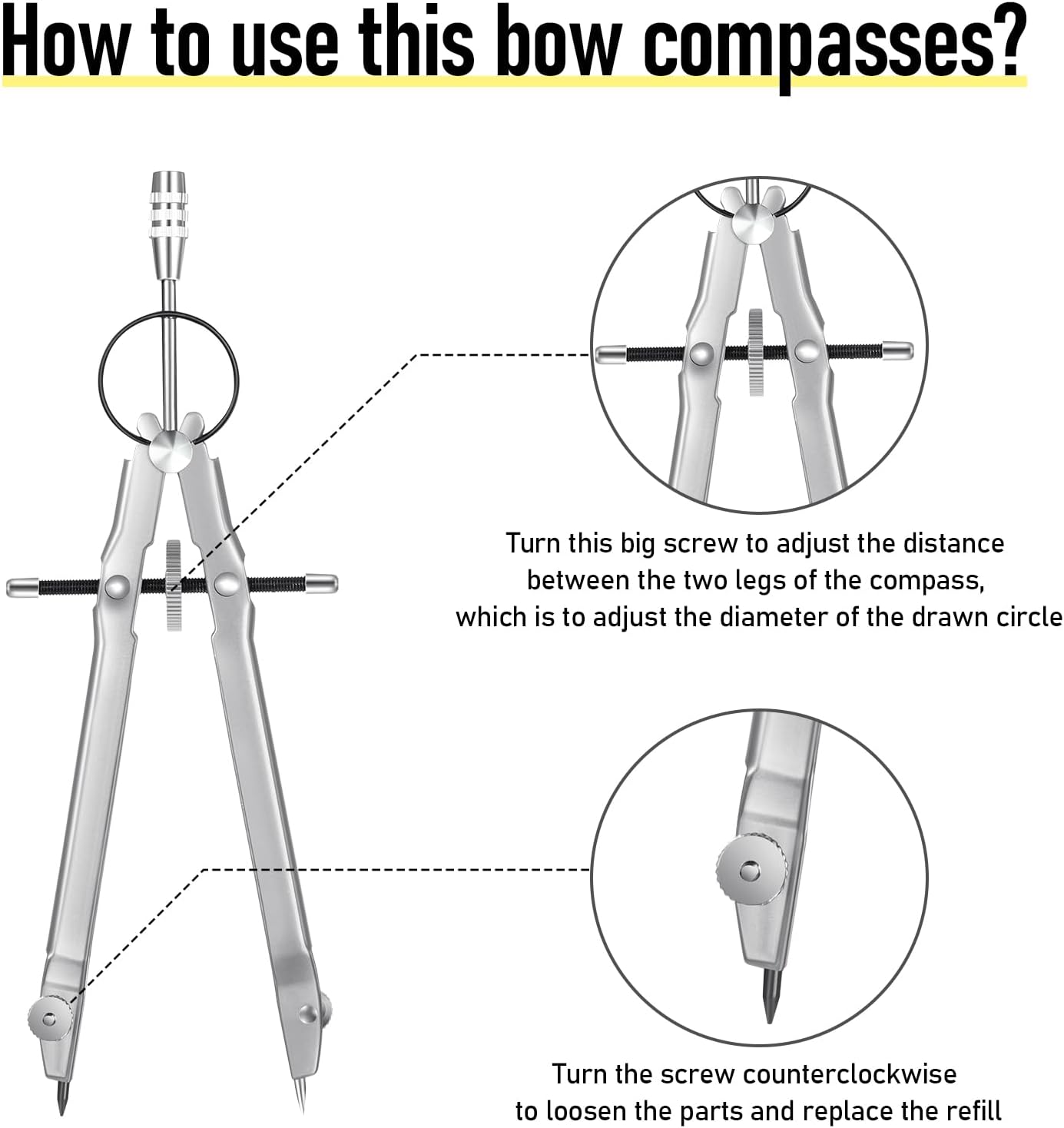 • Warm notice: if you receive the product and found the screw of compass is loose, do not worry, it is not a quality problem; The loose screw makes it easier for you to turn the pencil down; You can tighten the screw after using pencil replace divider part