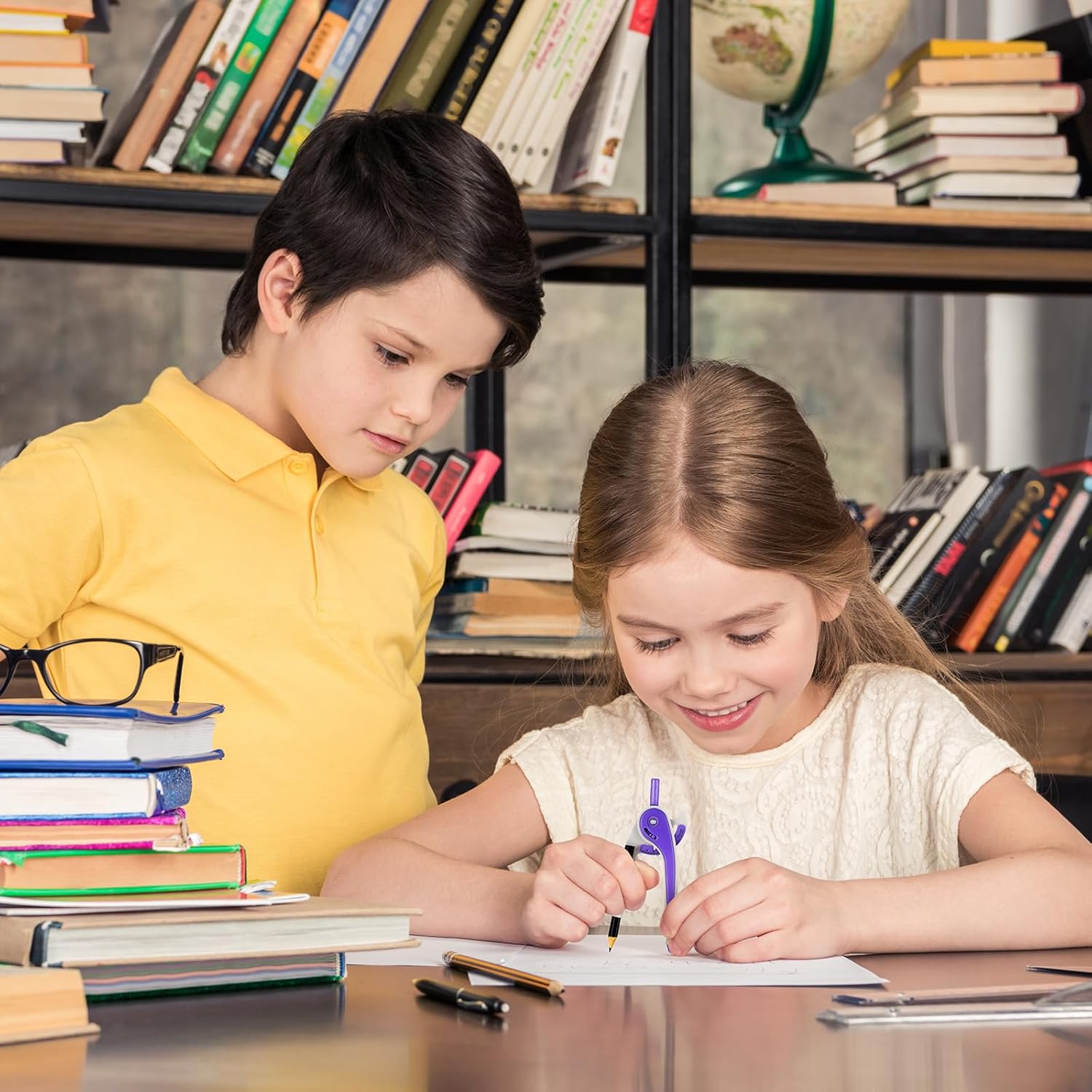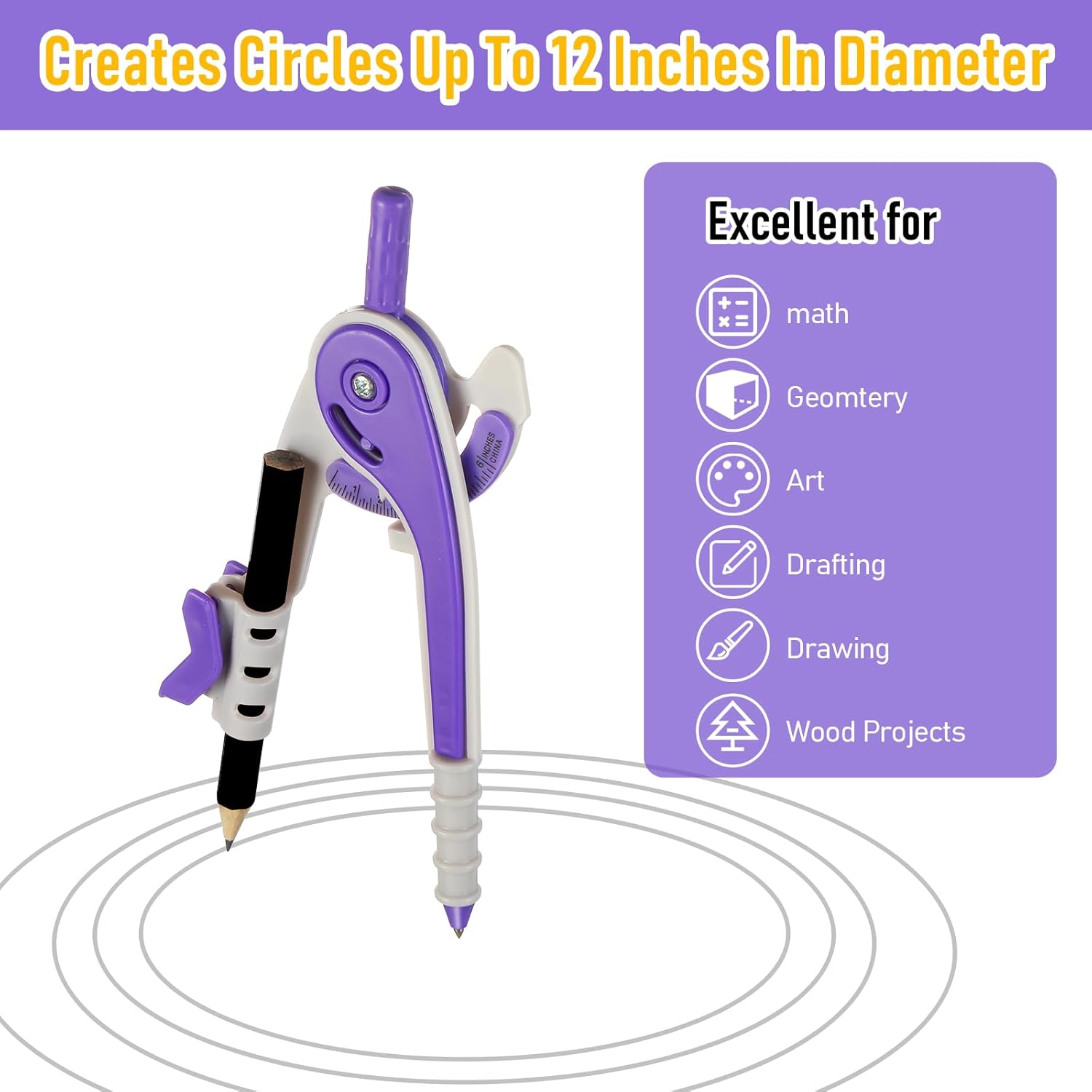 EBOOT Student Geometry Math Set, Drawing Compass and 6 Inch Clear Swing Arm Protractors 180 Degree Math Protractor (Purple)