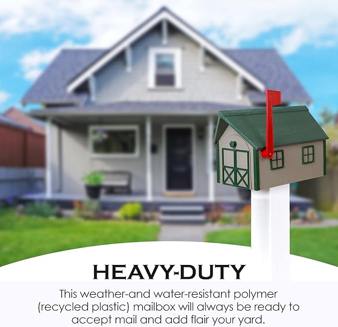 • MADE OF WATER-RESISTANT MATERIAL: Wooden mailboxes may not withstand exposure to the elements so we offer a better alternative. Designed for outdoor uses, our poly-material (recycled plastic) mailbox can hold up in any weather. Rain or shine, this weather- and water-resistant small mailbox will always be ready to accept your mails and decorate your lawn.