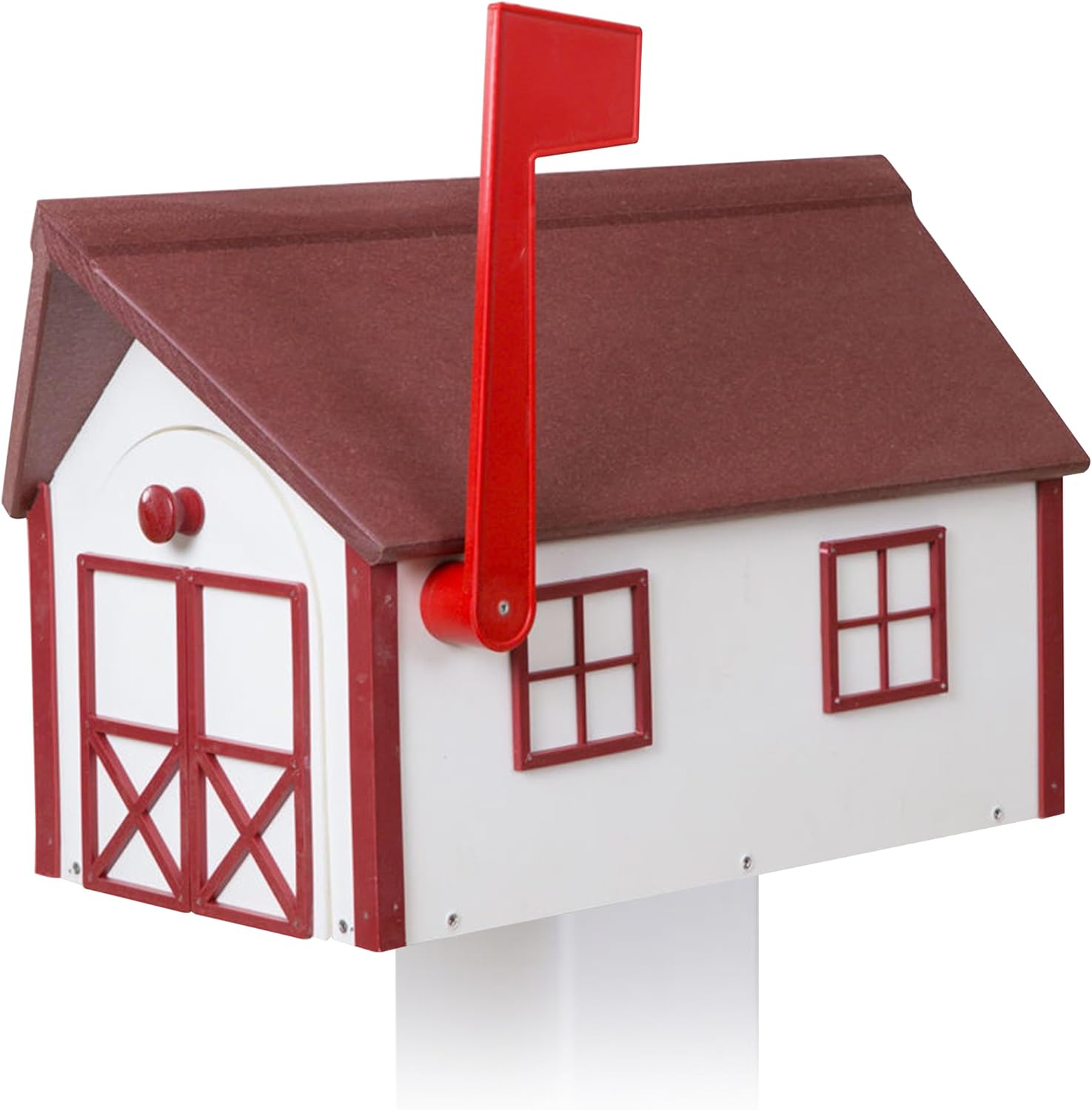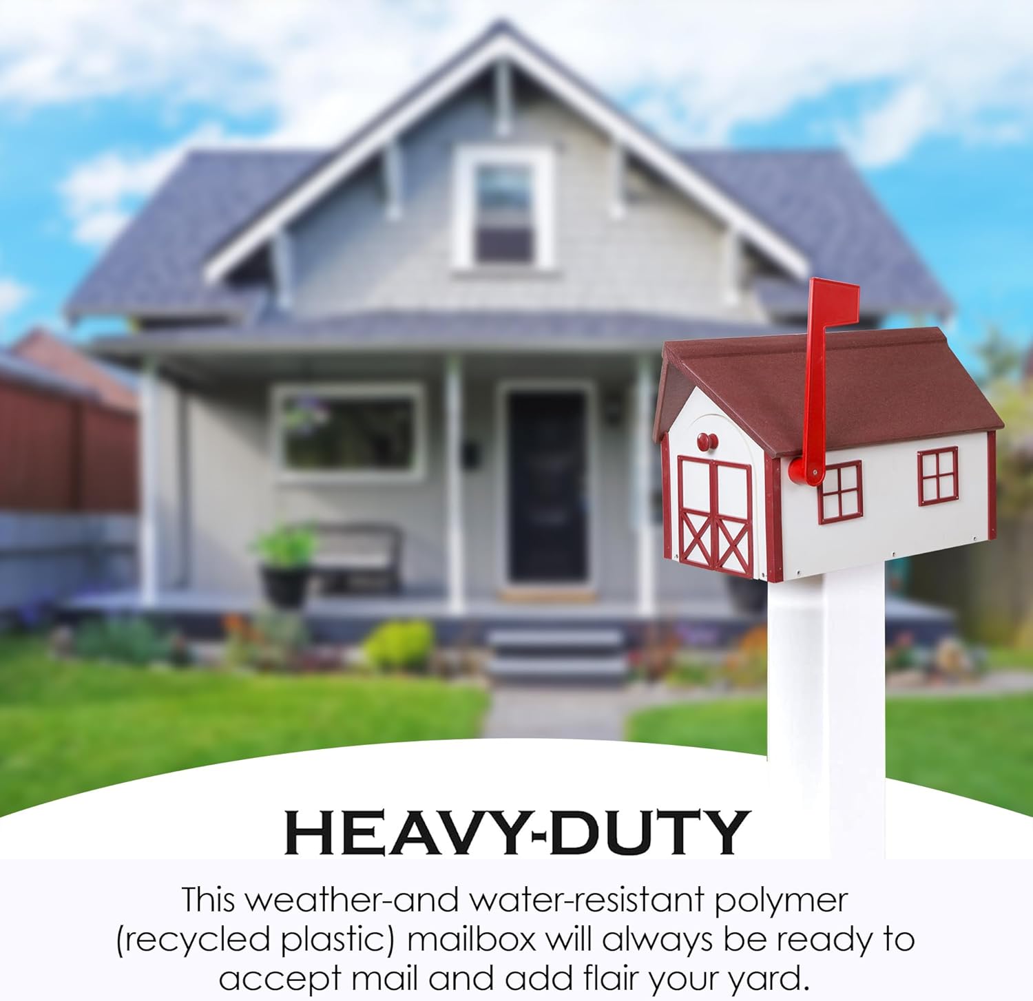 Peaceful Classics Poly Mailbox Durable, Weather-Resistant Amish Craftsman Mailboxes, Outside Uses Like Front Yard and Road Side Long-Lasting, Decorative, Modern Mailbox (White w/Burgundy Trim & Roof)
