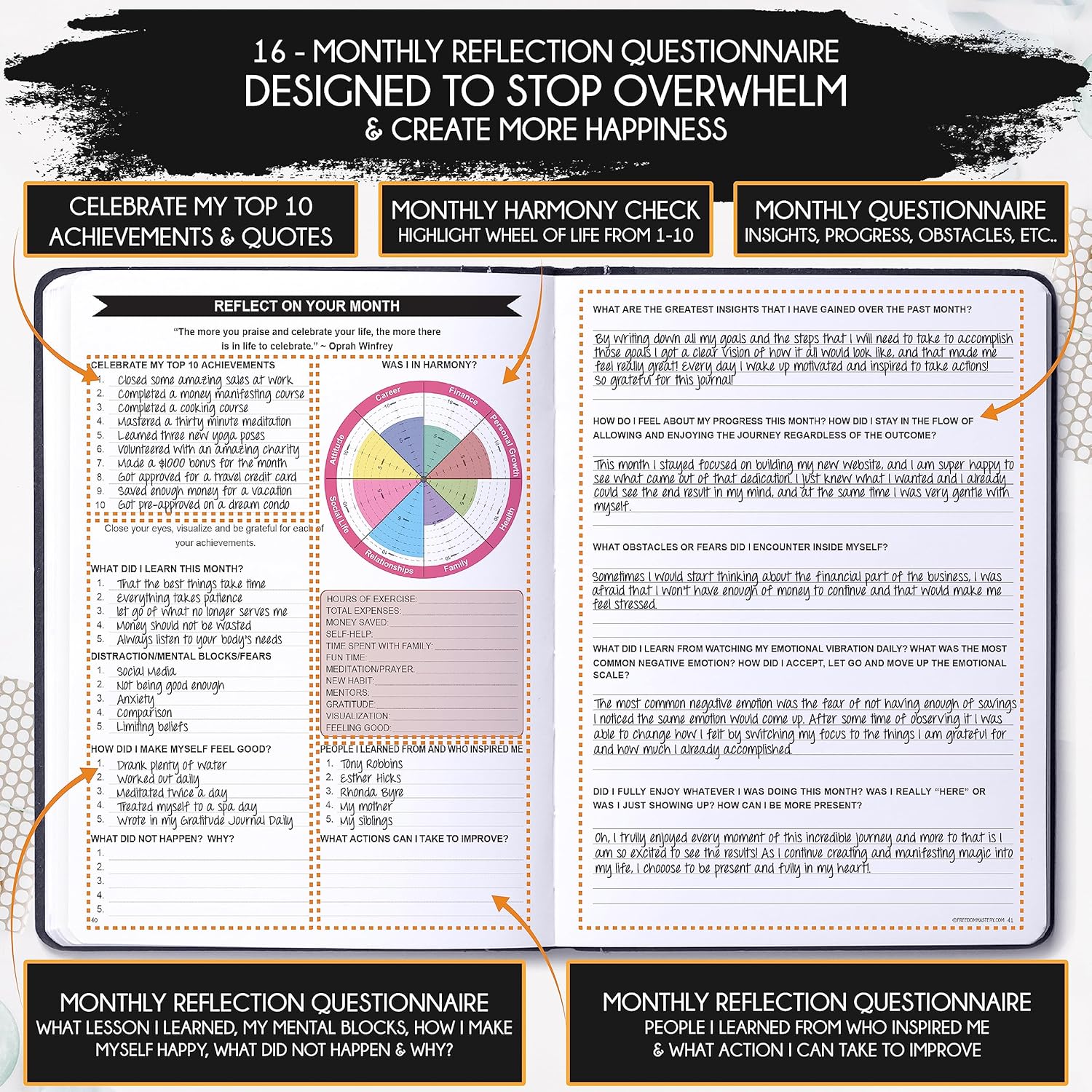 • PRODUCTIVITY PLANNER - Reduce overwhelm, stress, and fix procrastination, follow a unique 8 step system that will help you bring back harmony, clarity, and peace in your life while achieving your goals