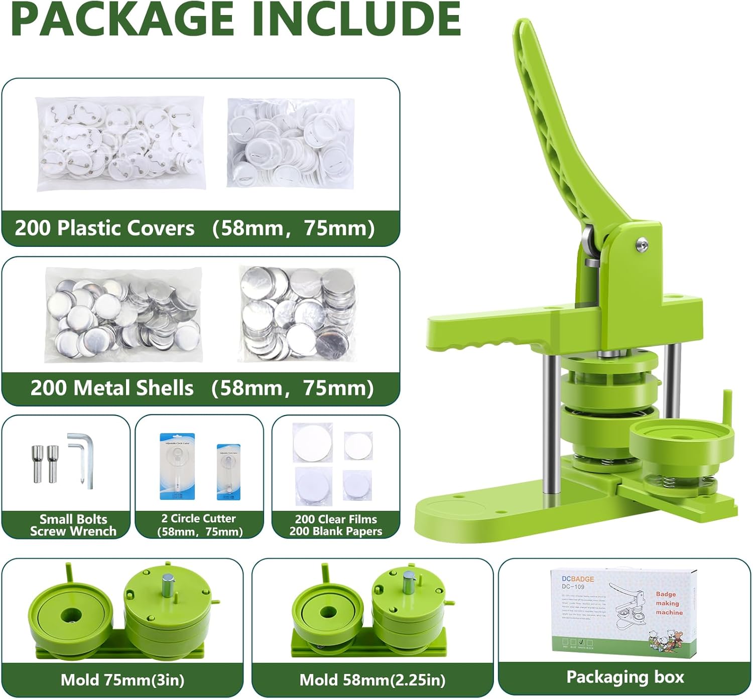 Button Maker Machine Multiple Sizes 200 Pcs,Pin Maker Machine 2.25+3 Inch Badge Maker,DIY Badge Making Kit with Free Button Parts, Circle Cutter