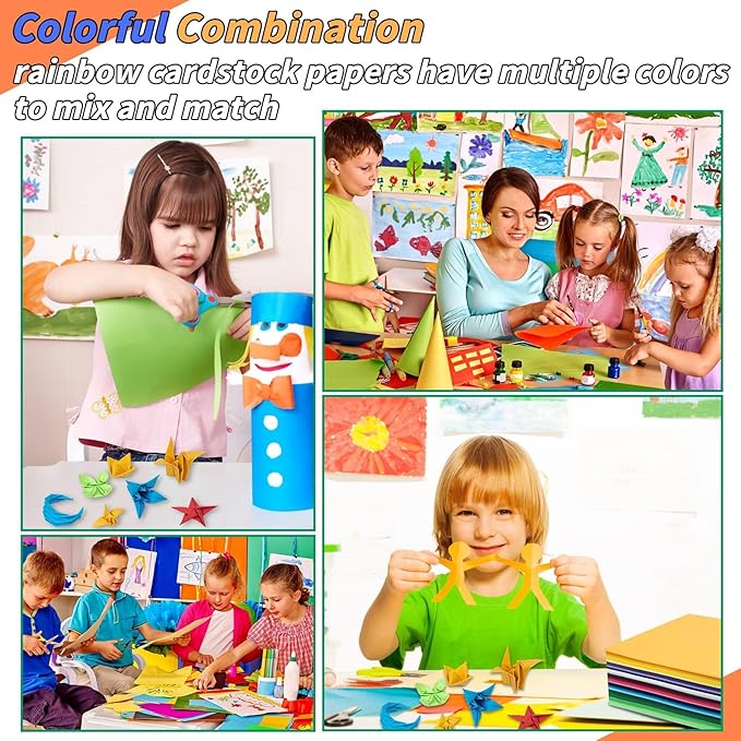 • Easy To Use: Craft rainbow cardstock paper can be cut, punched, folded, tearing,compatible with die cut machine, cricut maker, cricut joy embossing folders, ink and stamp, glitter etc to make card toppers, tags, greeting cards, banners,party decor. Craft lovers /teachers will love these paper