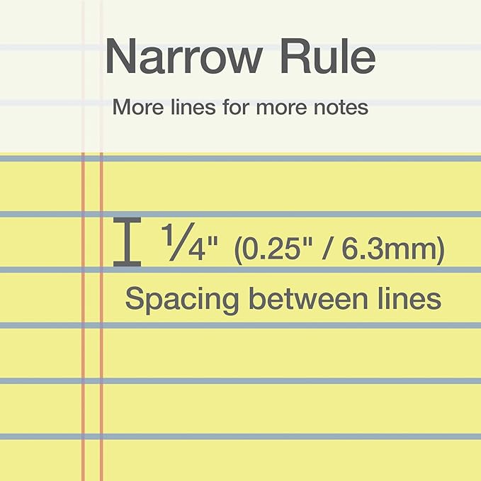 • Stock up on a 12 pack of 5 x 8 legal pads; each canary yellow legal pad has 50 perforated, narrow ruled sheets and is ruled on both sides