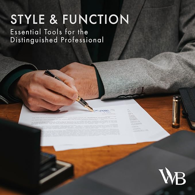 • ✒️Discover The All-inclusive Refillable Fountain Pen Set - Includes luxurious Primori fountain pen, ink converter, 12 x blue ink cartridges, 12 x black ink cartridges, premium leather pen case, and a deluxe gift box - ready to be gifted. Included with every order is a complete instruction booklet for your Wordsworth and Black Pen Set. All the information you'll need to get started using and enjoying your luxurious writing tool will be right at your fingertips!