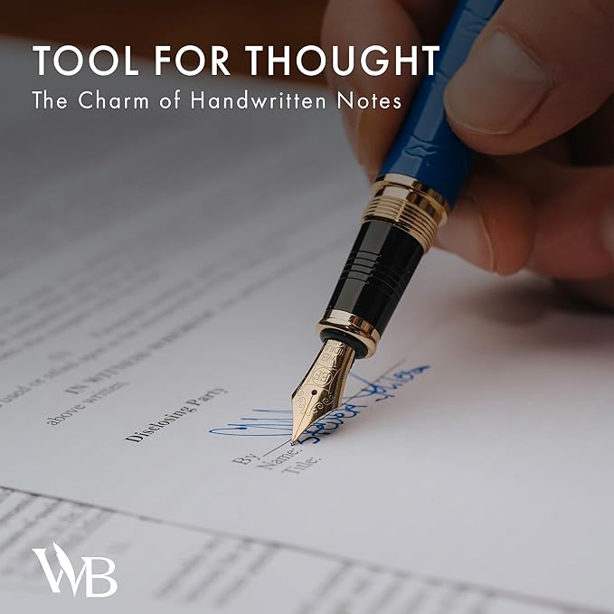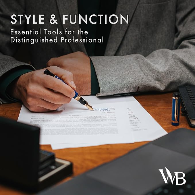 Wordsworth & Black Primori Fountain Pen Set [Blue Gold]; Extra Fine Nib, Gift Case, 24 Ink Cartridges, Refill Converter, Manual; Journaling, Calligraphy, Smooth Writing Pens; Left and Right Handed
