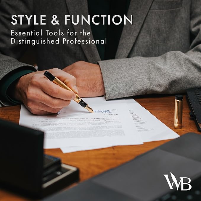 Wordsworth & Black Primori Fountain Pen Set [Stunning Gold]; Medium Nib, Gift Case, 24 Ink Cartridges, Refill Converter, Manual; Journaling, Calligraphy, Smooth Writing Pens; Left and Right Handed