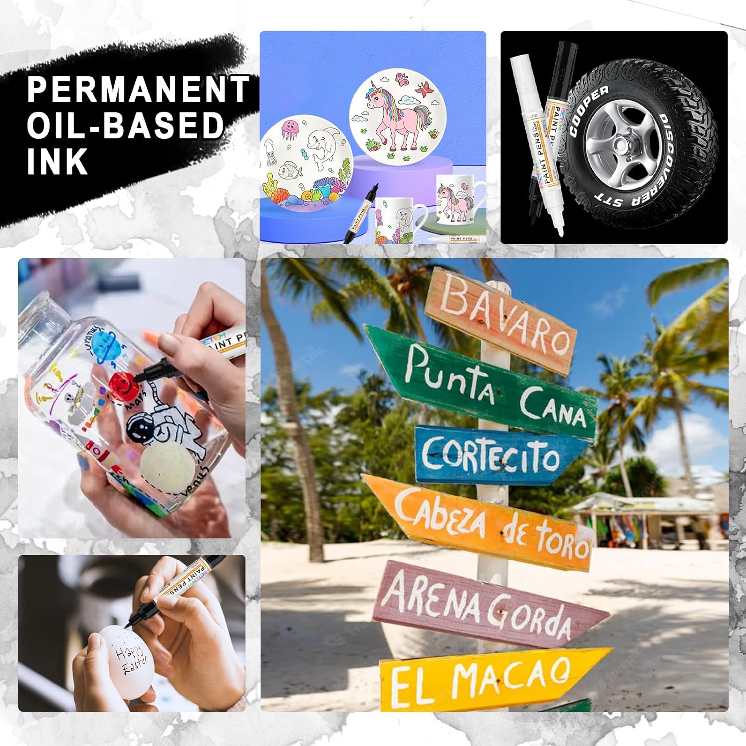 • 【Versatile Applications】These permanent oil-based paint pens are the best choice for working on non-porous materials on multiple surfaces such as DIY projects, tire paint, mason jars, cups, skateboards, cell phone cases, repair toys, and patio wood fences.This paint pen set makes a perfect and thoughtful stone painting set gift.