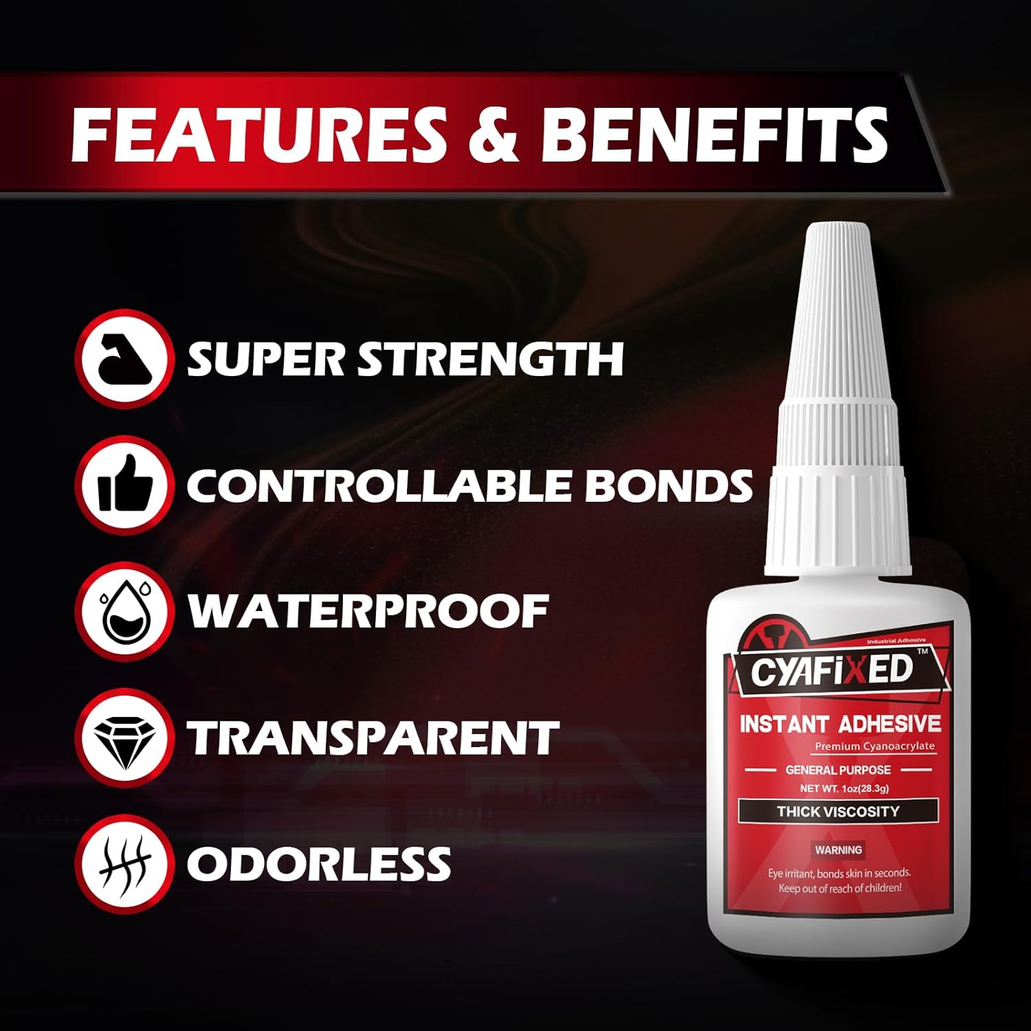 Super Glue Liquid, Instant Clear Cyanoacrylate Thick Viscosity Adhesive, Food Safe CA Glue for Shoe Sole Repair Leather Ceramic Plastic Glass Metal Wood Aquarium Porcelain Rubber Pottery Model Craft