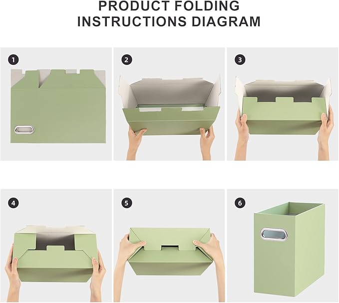 Oterri File Organizer, Small Storage Box, Cardboard File Folder Organizer, Collapsible File Box, Hanging File Organizer for Letter Size, Portable File Box with Handle, Only Box(Green,6 Packs)