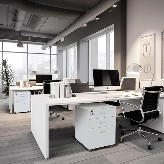 • EASY TO MOVE: The filing cabinet is equipped with four rollers, which can be rotated 360°. Built-in brakes on front 2 casters to keep it in position and add stability
