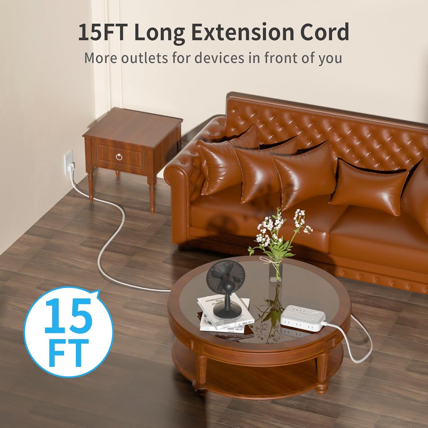 • 【 15 ft Long Extension Cord For Anywhere】Are you still worried that the power cord is not long enough? NTONPOWER 15 ft power strip to the white extension cord provides extra outlets at optimal reach in home and office spaces.