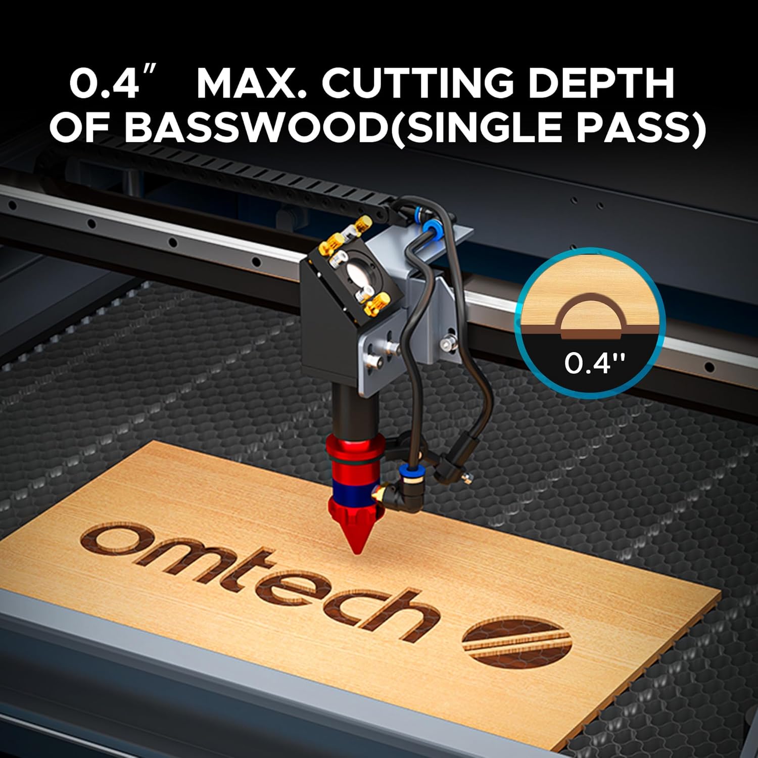 • Bring Your Creations to Life: OMTech's 90W CO2 laser engraver delivers precise cutting and engraving, capable of cutting up to 0.4" deep in wood and engraving on materials like glass, acrylic, and leather at 600 mm/s
