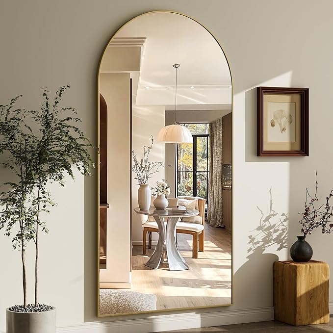 • EXTRA LARGE FLOOR MIRROR-The arched full length floor mirror features a modern style that can complement any type of room decor, adding a touch of elegance to your space while also making it feel more open and bright. With its 71" length and 30" width, this mirror provides a full body view, allowing you to check your outfit and overall appearance from head to toe before you head out the door