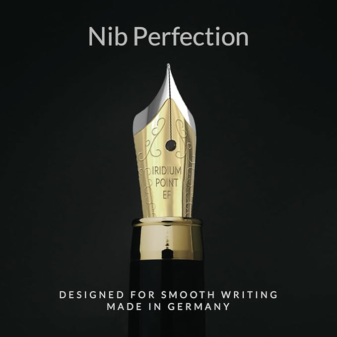 • ✒️Incomparable Quality And Exceptional Writing Experience - Effortless ink pen flow from the carefully selected German Iridium nib makes writing a pleasure. No-spill technology makes for perfect calligraphy, signatures and sketching. The unique, streamlined nib provides you with a supple thrill as it glides smoothly across the paper.