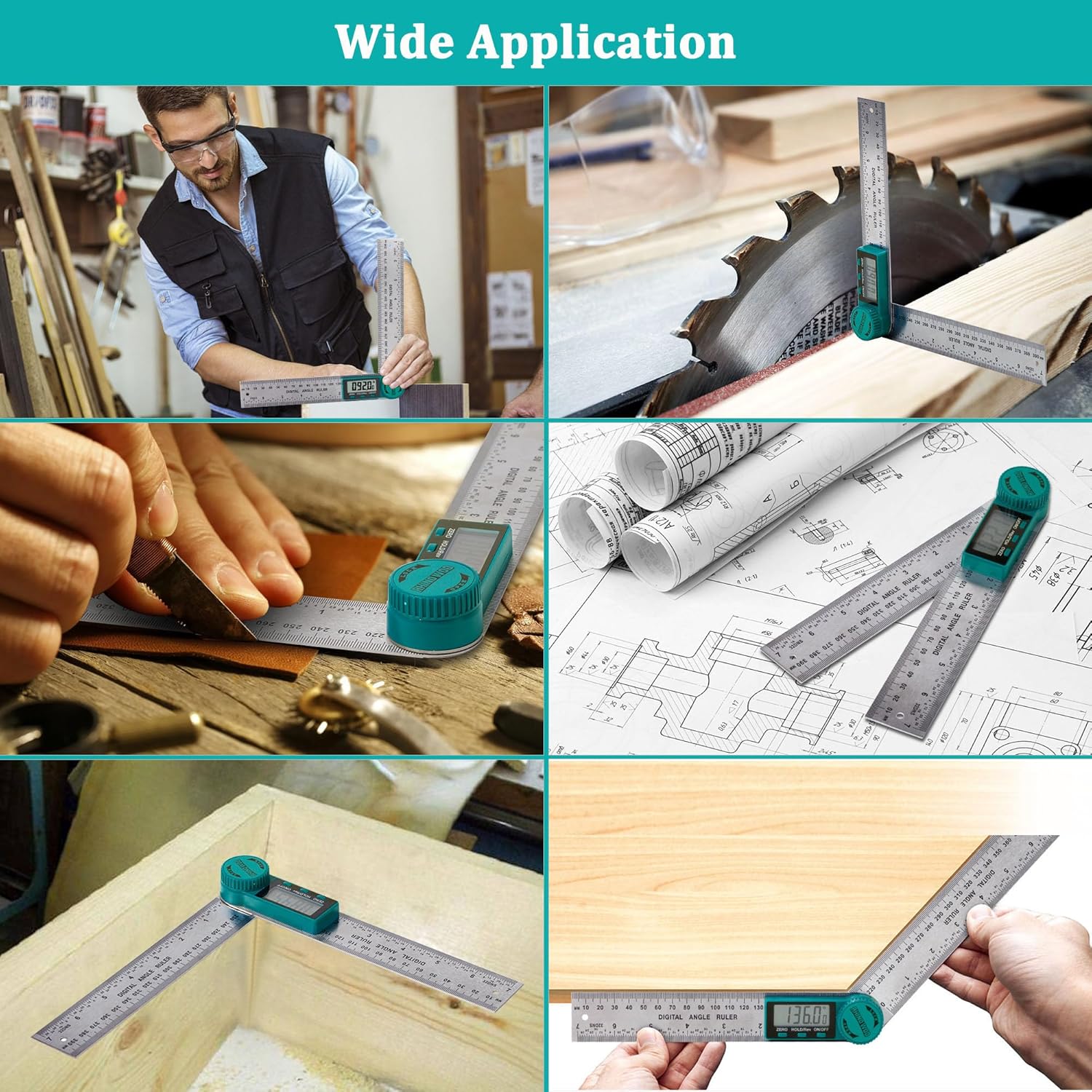 • 【2 in 1 Digital Angle Finder】TBVHOMM protractor has the function of a ruler and a protracting tool. The combination of a millimeter and inch scale ruler and a protractor makes it easy to measure internal and external angles. Suitable for woodworking, construction, drafting and other fields.