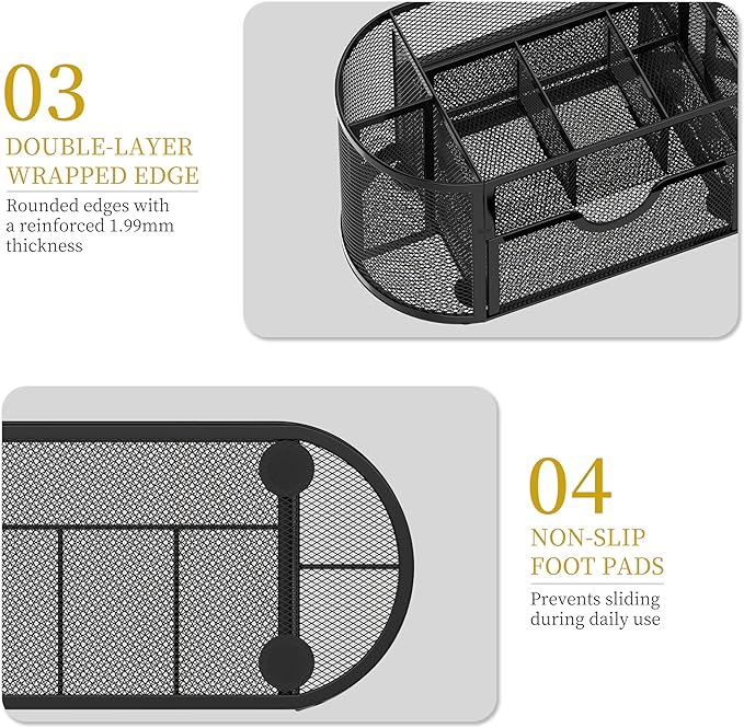 • [ 𝐏𝐫𝐨𝐝𝐮𝐜𝐭 𝐒𝐢𝐳𝐞 ] Mesh pen holder size 8.6 L x 4.3 W x 4.1H inch,small drawer measures 4.9 L x 4.1 W x 2.3H.