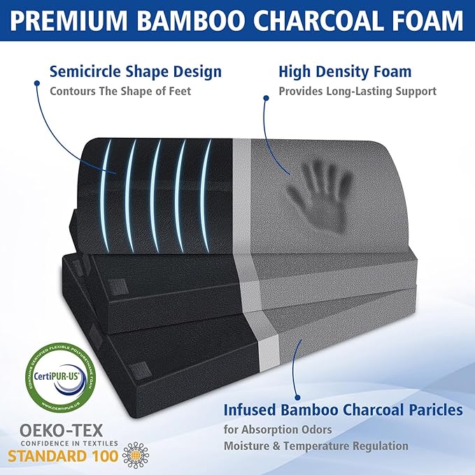 • [Supportive High Density Foam] The foot rest under desk utilizes high-density foam infused with bamboo charcoal particles. Compared to ordinary foam, high-density foam provides better support, less deformation, and greater resilience. Additionally, the filled bamboo charcoal particles effectively regulate temperature and odors.