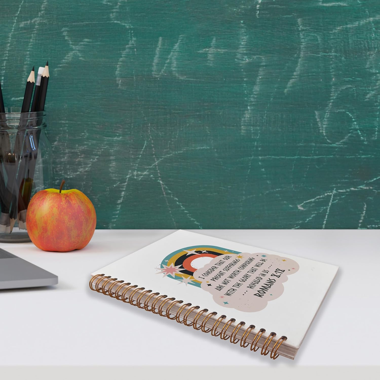 VNWEK Bible Scripture Romans 8:18 Our Present Sufferings Are Not Worth Comparing Spiral Notebook Journal 5.5 x 8.3 inches,Christian Lined Hardcover Spiral Notebook,Christian Gifts for Women Girls