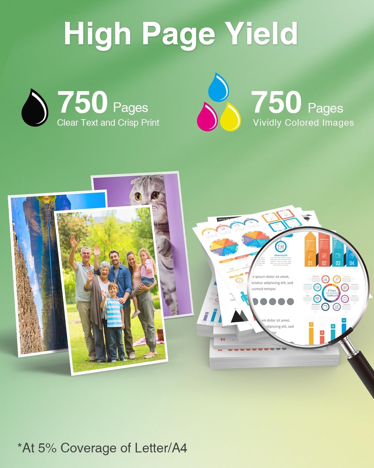 • 【High Page Yield】LC404 High Yield Ink Cartridge. Up to 750 pages per LC404 black ink cartridge, up to 750 pages per LC404 color ink cartridge. (A4 Paper, at 5% coverage)