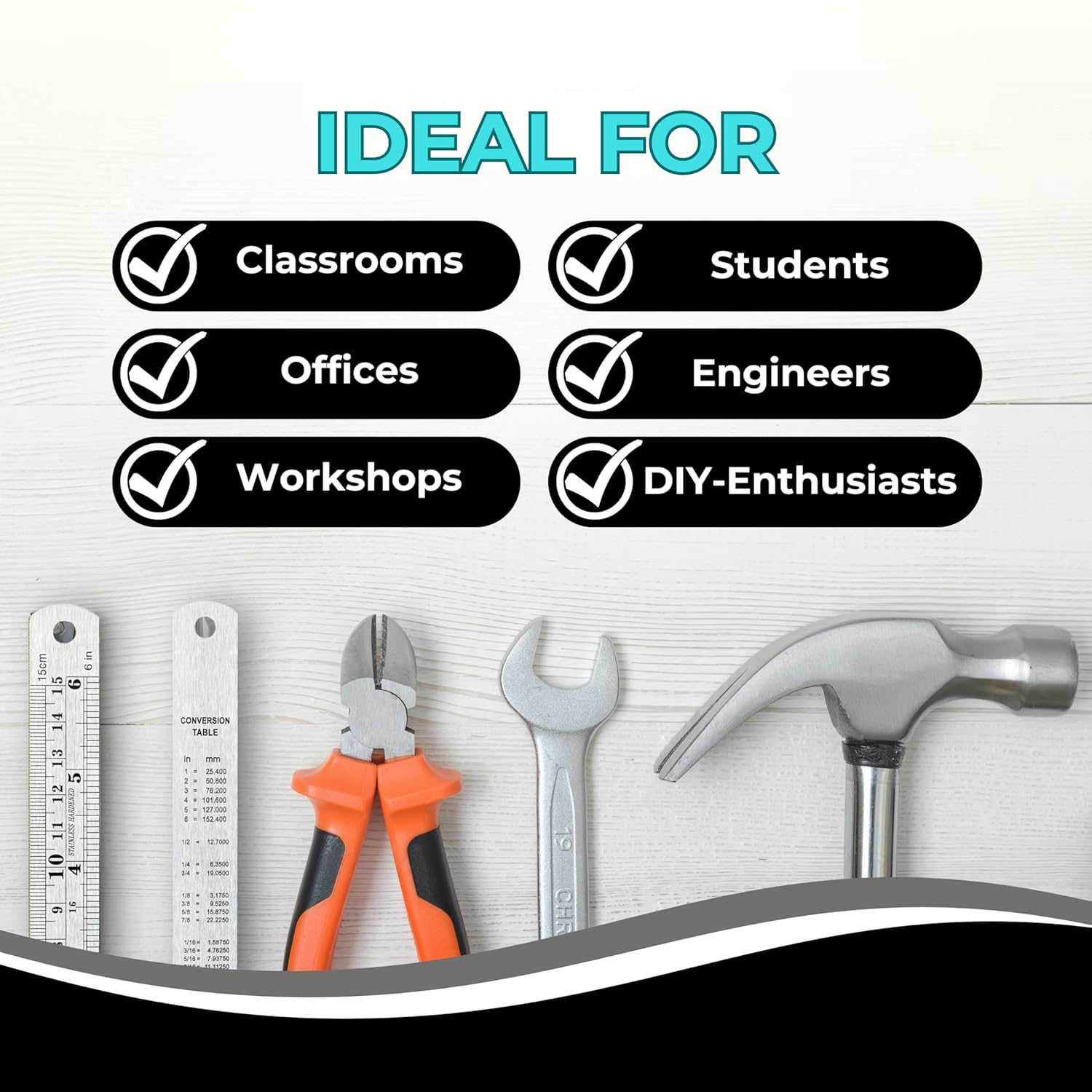 • Ultimate Convenience in Compact Size - Our 10-pack offers high-grade 6-inch stainless steel rulers. Perfect for on-the-go measurements, crafting, and small drafting projects. Fits in your pocket!