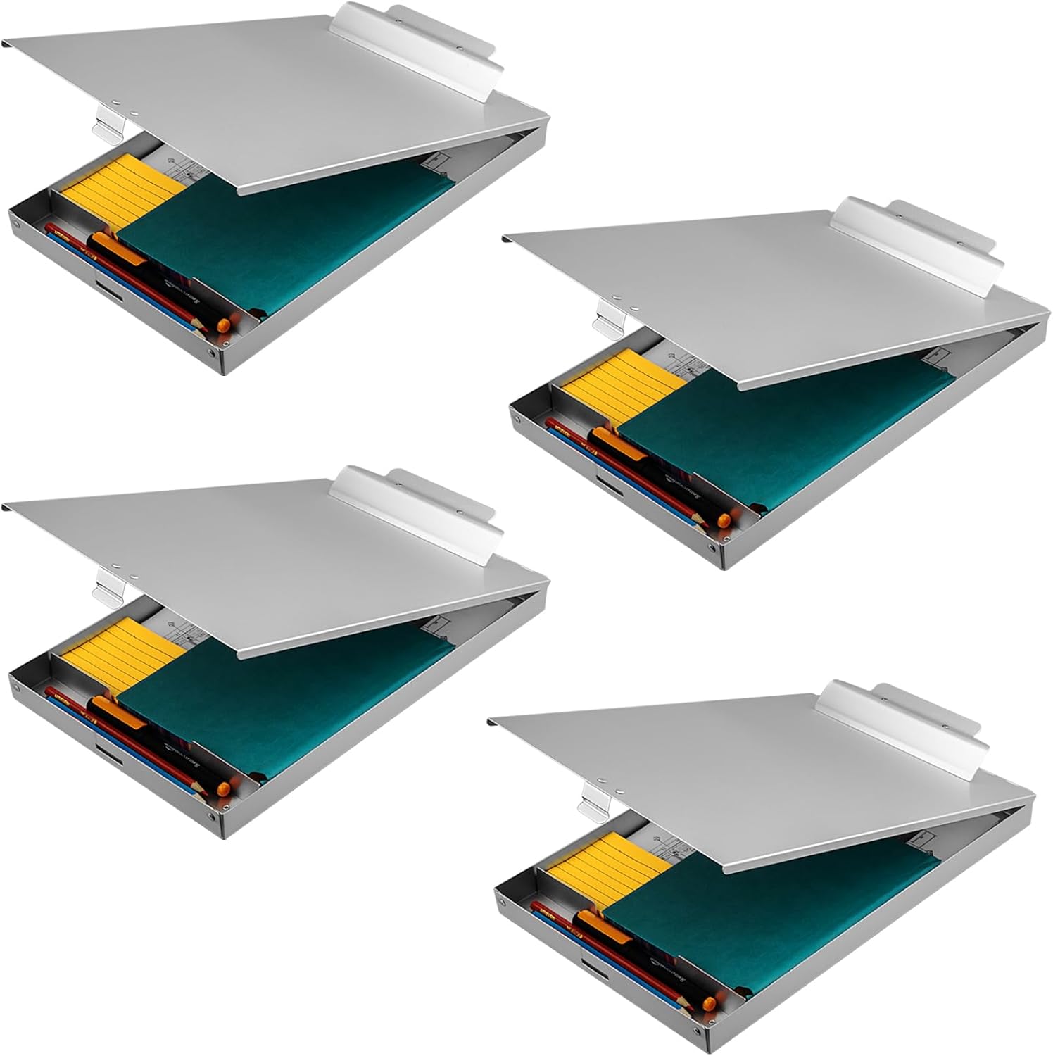 ZCZN Aluminum Clipboard with Storage, 4 Pack Recycled Metal Clipboard Box, Form Holder, Suitable for School, Office, Jobsite or Medical Staff, 9.25 x 13.78 Inches, Silver