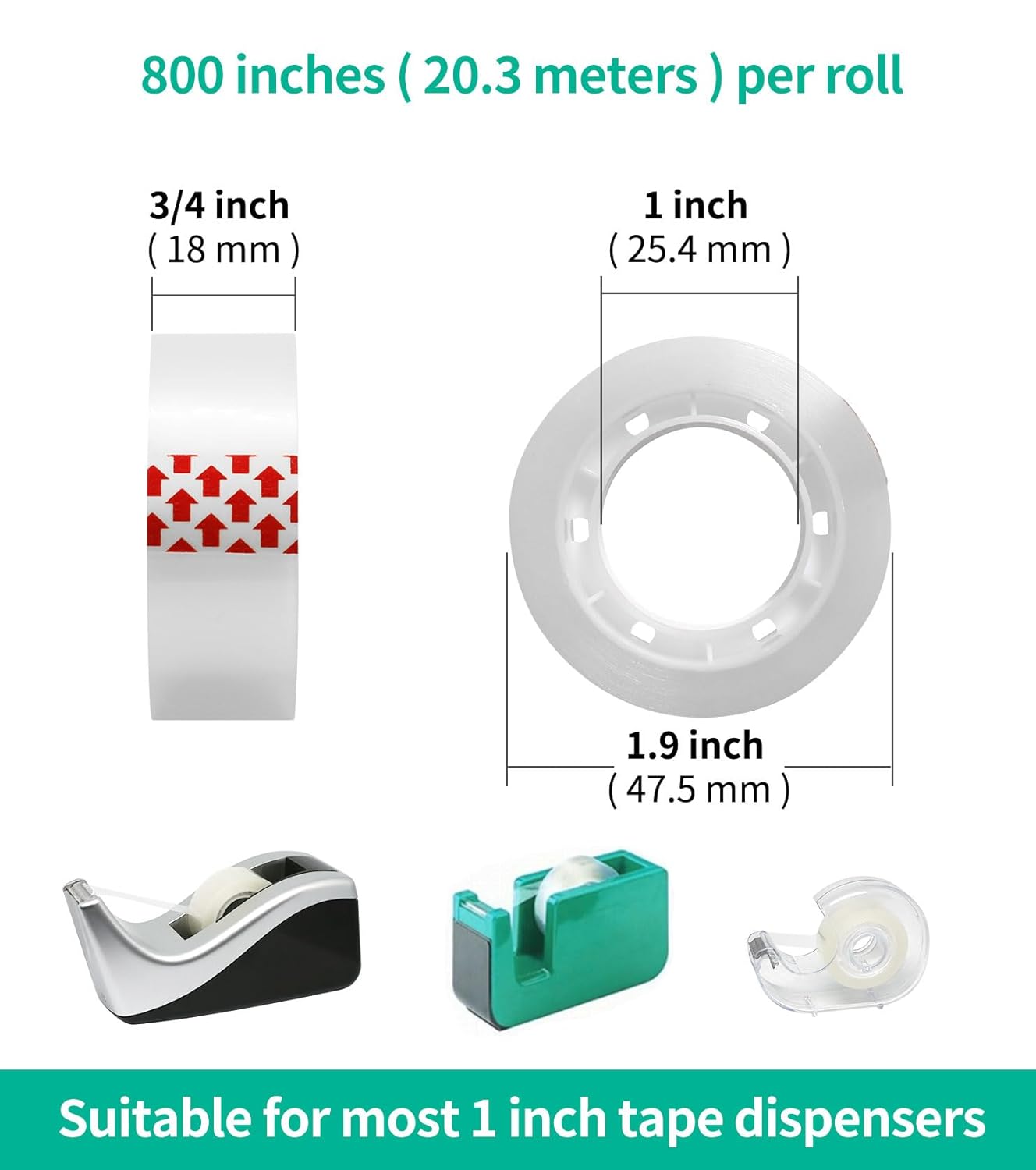• 19,200 INCHS: Value Pack. 24 rolls clear tape, each roll tape length is 800 inches (20.3 meters), width is 3/4 inch (18 mm).
