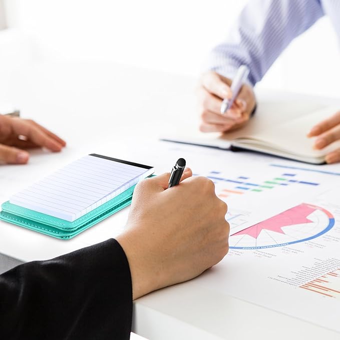 • Package contain: you will get a mini pocket notepad holder with 50 lined sheets, a metal pen and 8 memo book refills with 30 lined paper per pad; They are ruled pages, can comfortably, good for business, conference, meeting, office and travel; Can carry and use it anywhere