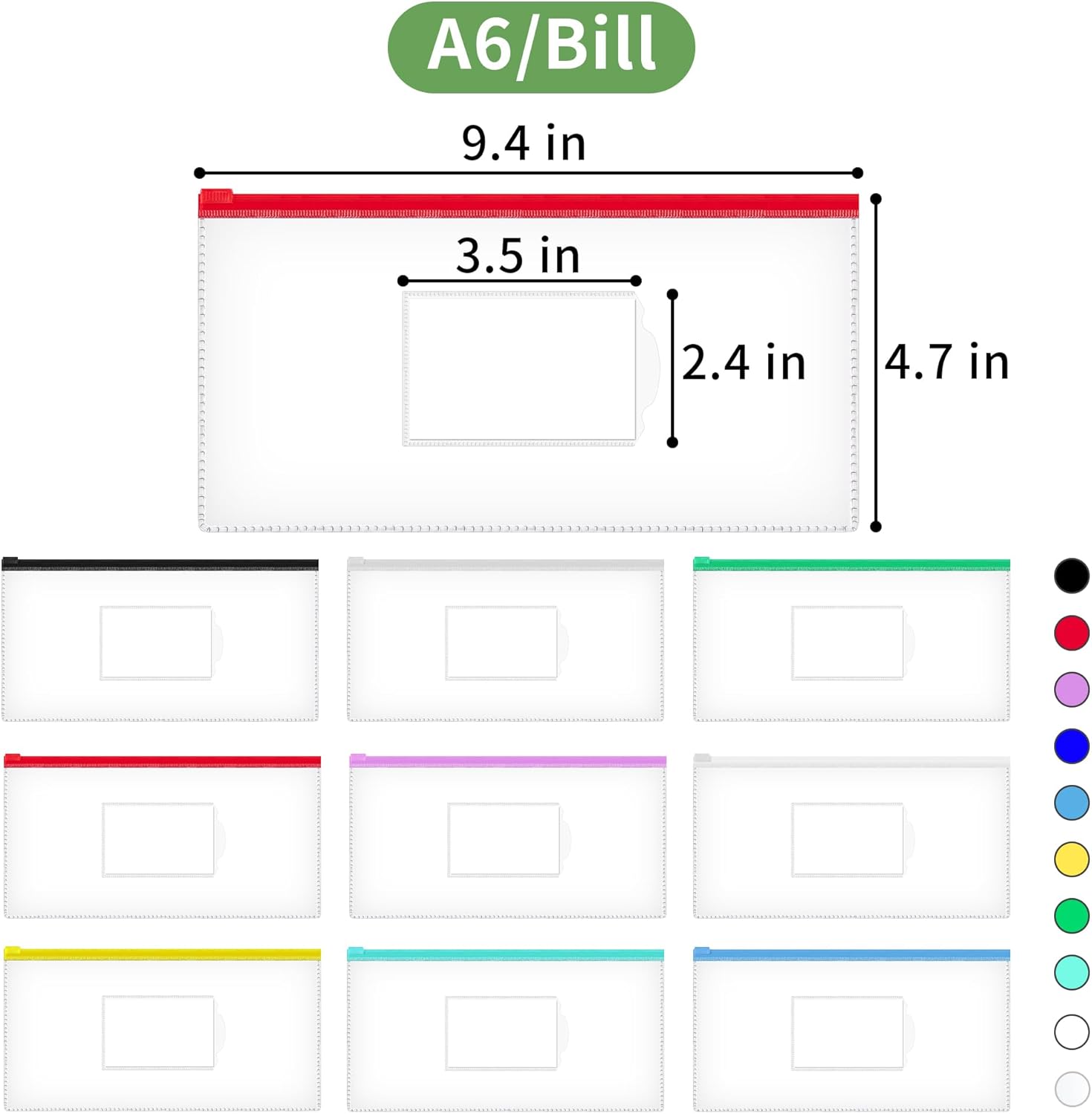 • Vibrant Hue Assortment: Choose from a rich palette of 10 distinct colors to categorize and identify your items effortlessly. These colorful transparent envelopes add a visual edge to your organization system.